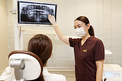 まずはお困りの状態や、お口に関する悩み、相談、治療に対する要望など詳しくお伺いします。痛みがある場合は痛みを取り除く治療をします。また、よりよい治療を行うために、レントゲン、お口の写真撮影、検診、歯ぐきの検査をします。